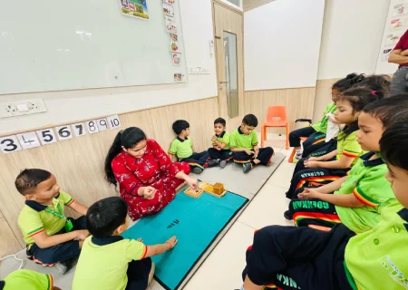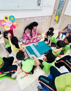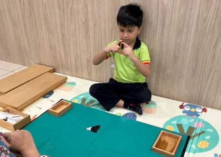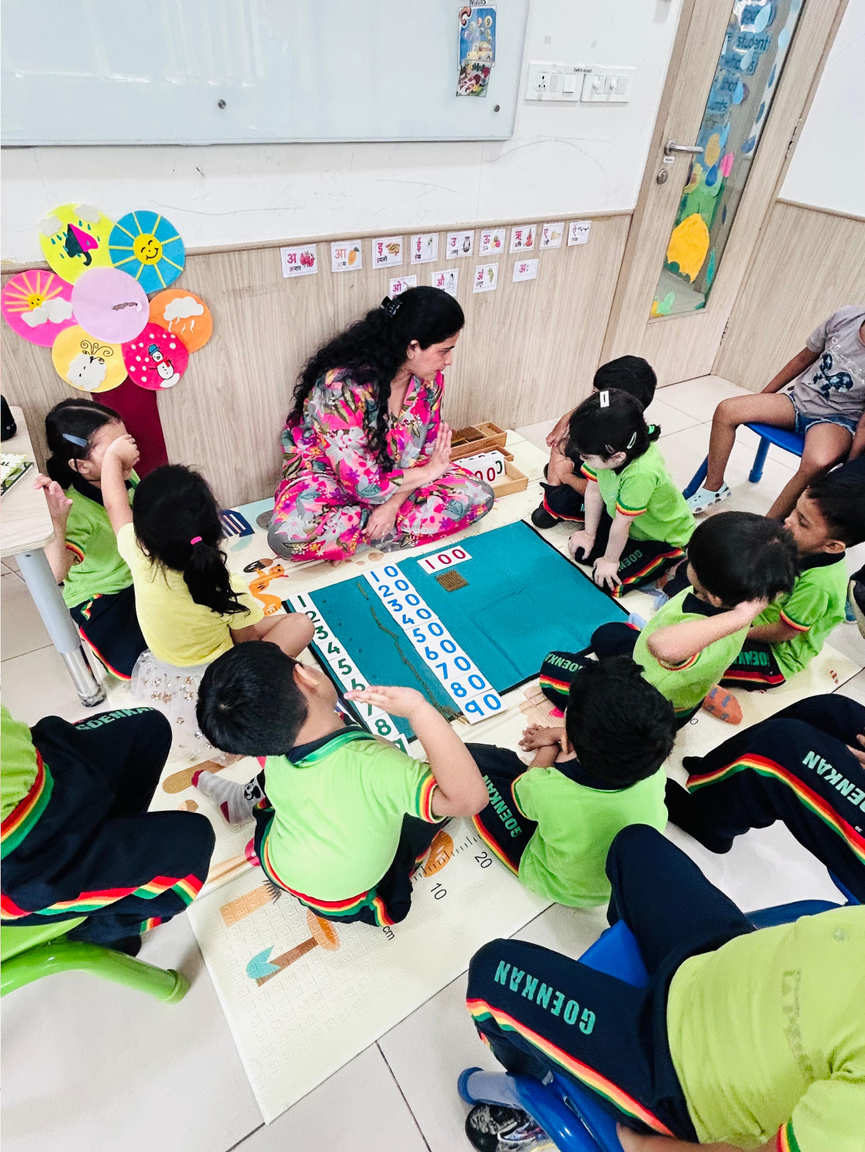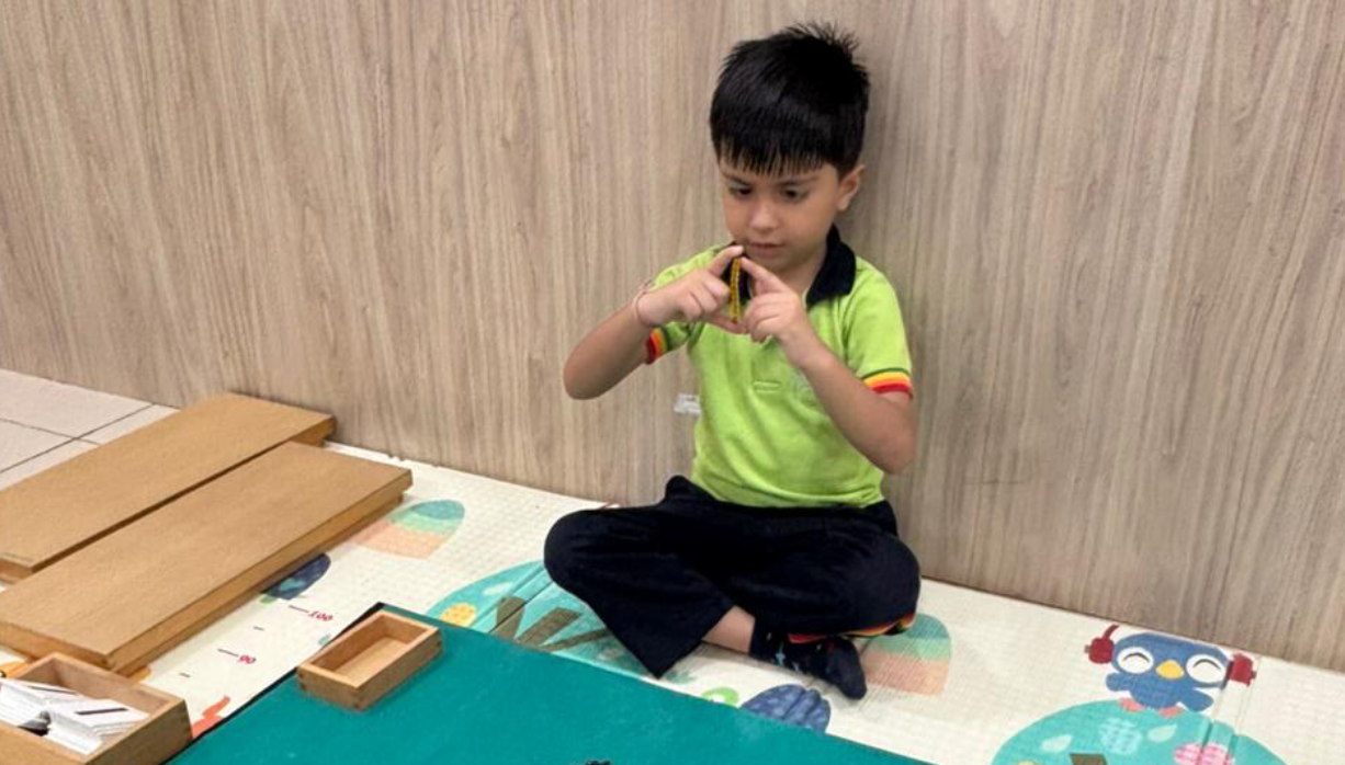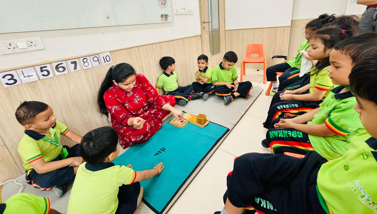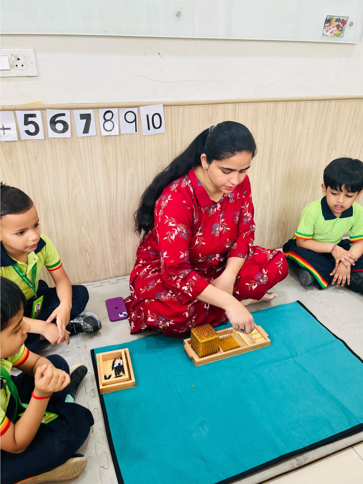 In Montessori classrooms, mathematics is introduced through concrete, hands-on materials that help children understand abstract concepts with ease. Using tools such as Number Rods, Golden Beads, and other specialized apparatus, children explore numbers, quantity, and the decimal system in a tangible way.
