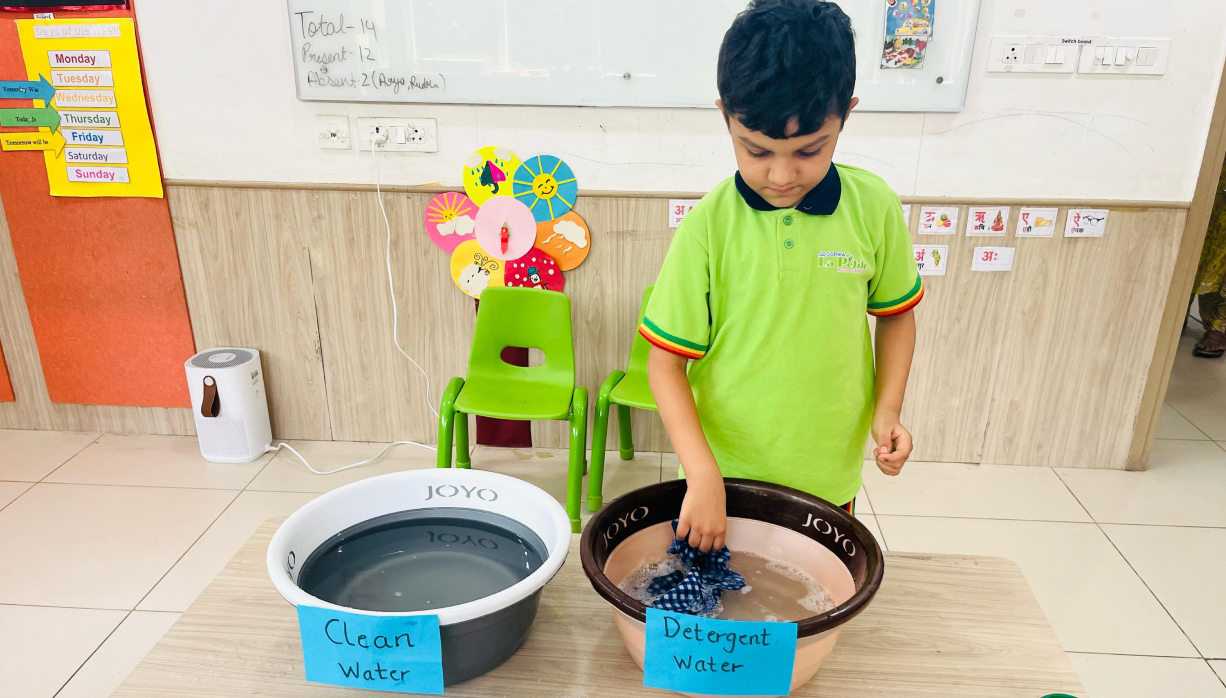 Practical Life activities give children the confidence to care for themselves and their surroundings. By engaging in familiar tasks such as pouring water, spooning food, or threading beads, they learn independence, responsibility, and pride in their abilities. These experiences also nurture patience, focus, and cooperation, helping children grow into capable and confident individuals. Practical Life activities build independence through simple, purposeful tasks such as pouring, spooning, and threading. These real-life exercises refine fine and gross motor skills, strengthen hand–eye coordination, and develop concentration and a sense of order. They also cultivate self-reliance, responsibility, and social awareness, laying the foundation for holistic growth.
