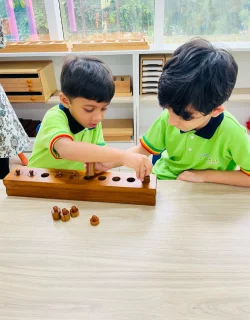 Through repeated use of these materials, children strengthen concentration, order, and critical thinking. More importantly, sensorial work lays the foundation for abstract learning, preparing the child for future exploration in mathematics, language, music, and the creative arts.
