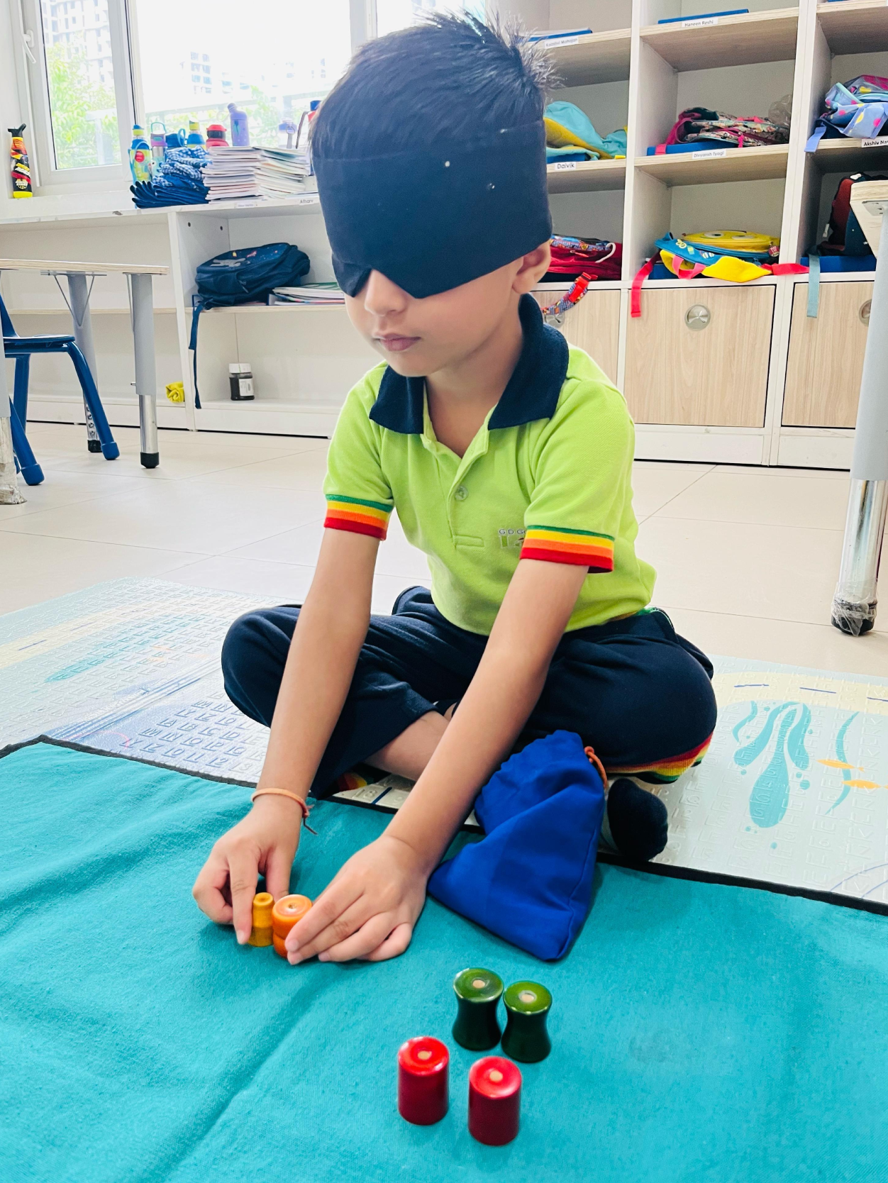 Each material isolates a specific quality—such as colour, shape, texture, size, weight, sound, smell, or dimension—allowing the child to focus, compare, and classify with precision.